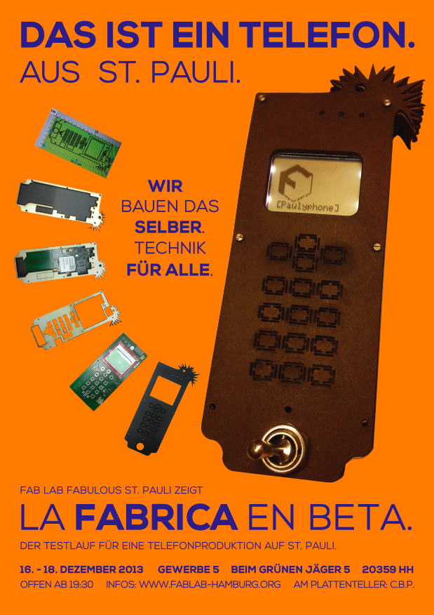 Das DIY-Phone von David Mellis aus Cambridge ist einer von mehreren Versuchen, auch das Telefon zur Open Hardware, zur Technologie für alle zu machen, die man nach seinem eigenen Geschmack gestalten kann. Fabulous St. Pauli wird im Frühjahr 2014 in einer größeren Aktion zeigen, dass man schlichte Telefone wie das DIY-Phone auch in der Stadt von heute herstellen kann, aus der die Produktion weitgehend verschwunden ist.